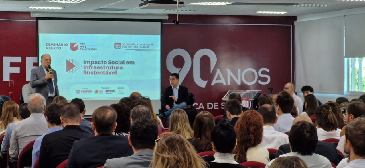 Impacto social e infraestrutura sustentável são pautas atuais e relevantes diante do cenário de mudanças climáticas e crise econômica. Com o objetivo de aprofundar a questão e discuti-la junto a especialistas, no dia 10 de maio de 2024, no auditório da FESPSP em São Paulo, aconteceu o Seminário Aberto MBA PPP e Concessões, cujo tema foi “O Impacto Social e Infraestrutura Sustentável”.